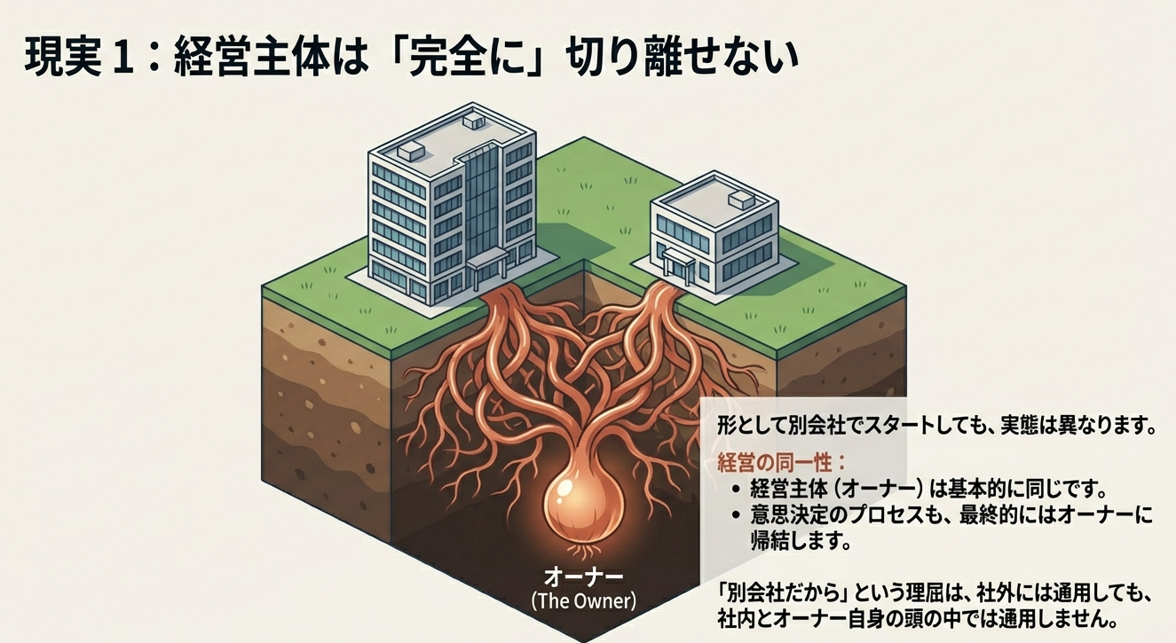 しかし、ここで経営者が直視すべき現実は、「形式は別でも、実態は運命共同体である」という点です。