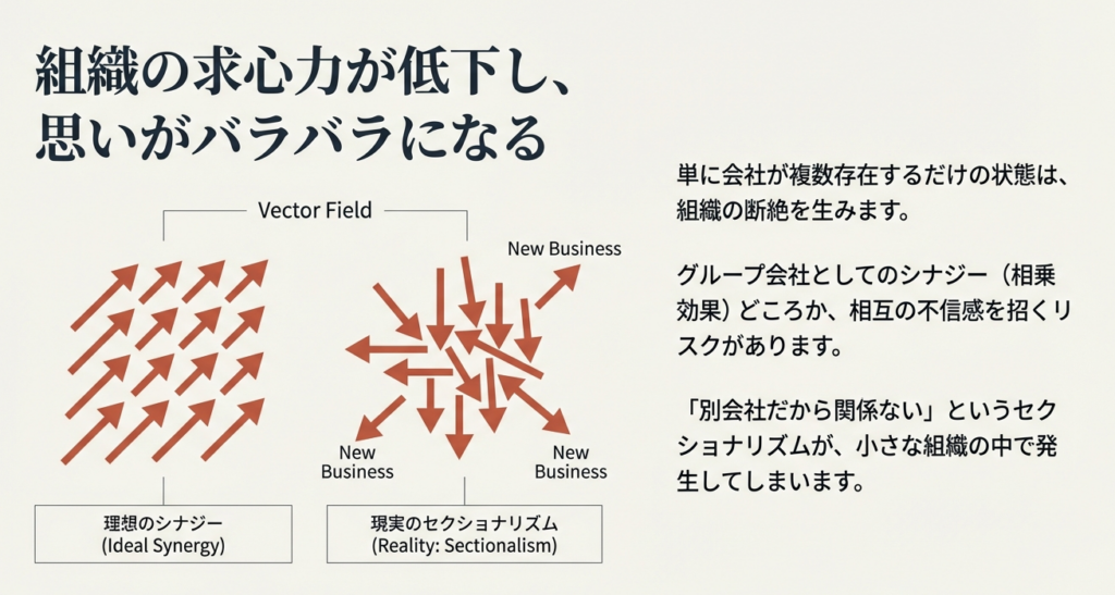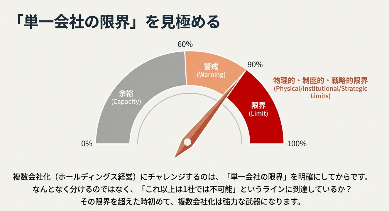 この限界を定義しないまま安易に箱(会社)を増やすことは、組織のエネルギーを霧散させ、共倒れを招くリスクを孕んでいます。