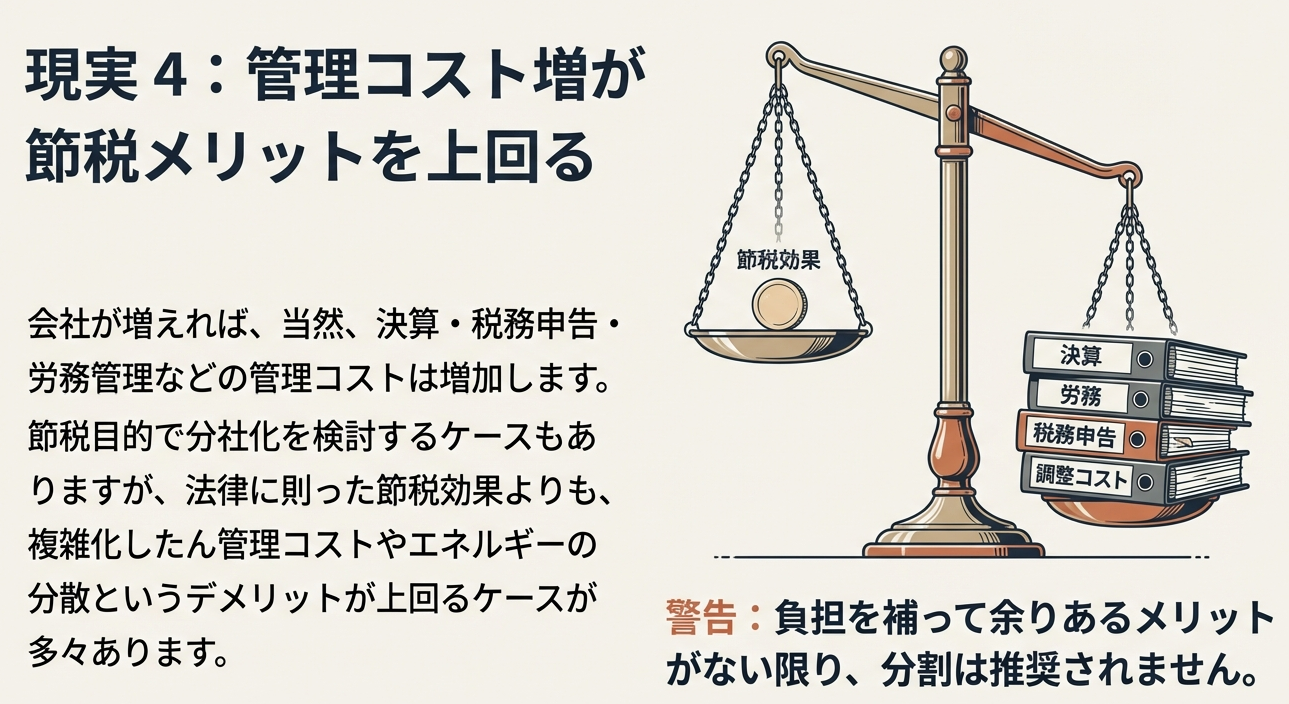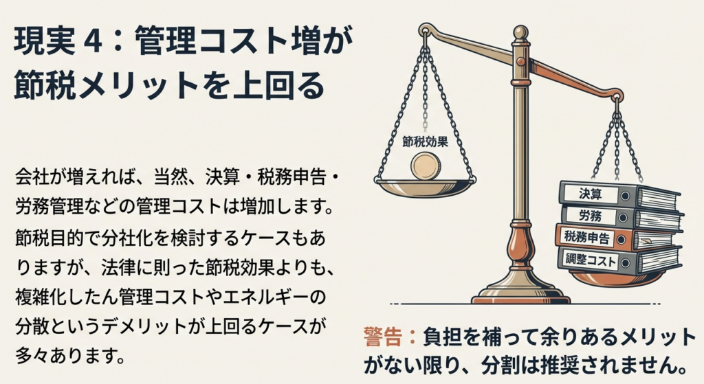 4. 複数会社化の「理想」と「現実」:管理コストと節税の罠