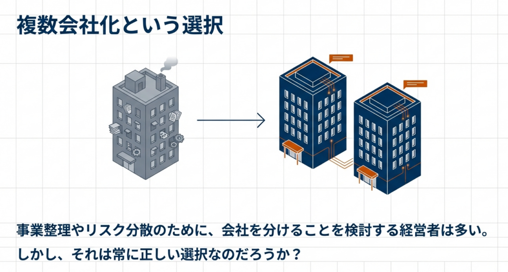 1. 会社を分けるのは「管理の透明性」を買う代わりに「維持コストと複雑性」を支払うトレードオフである。