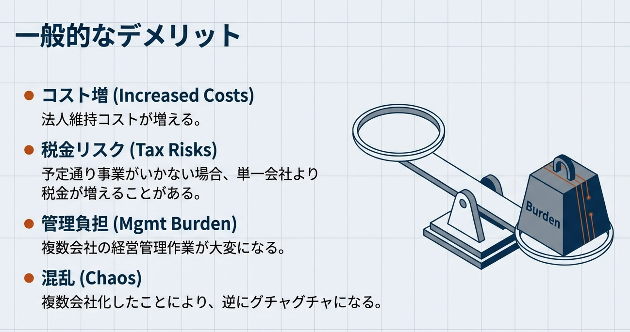 複数会社化において、メリットは常にデメリットと背中合わせです。