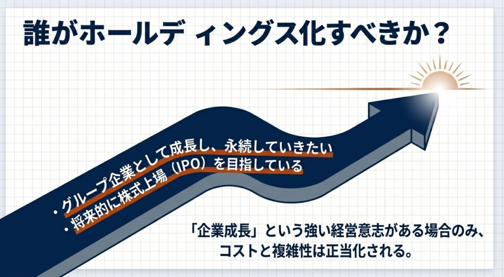 ホールディングス化を検討すべきなのは、以下のような高い志と戦略がある場合に限られます。