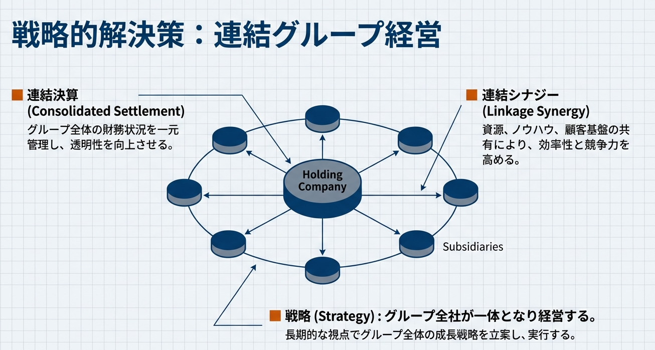 整理整頓の真の価値は、「不採算事業のサンクコスト(埋没費用)化」を防げる点にあります。1社体制では「成功している事業A」の利益で「失敗している事業B」の赤字を無意識に補填してしまいがちですが、分けることで資本配分の判断がシビアになります。これが、撤退や集中といった経営判断のスピードを劇的に高めるのです。