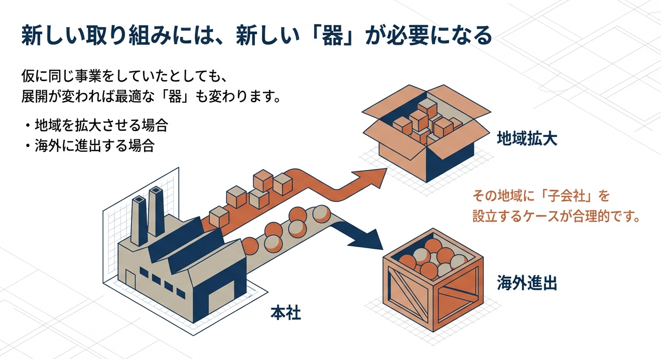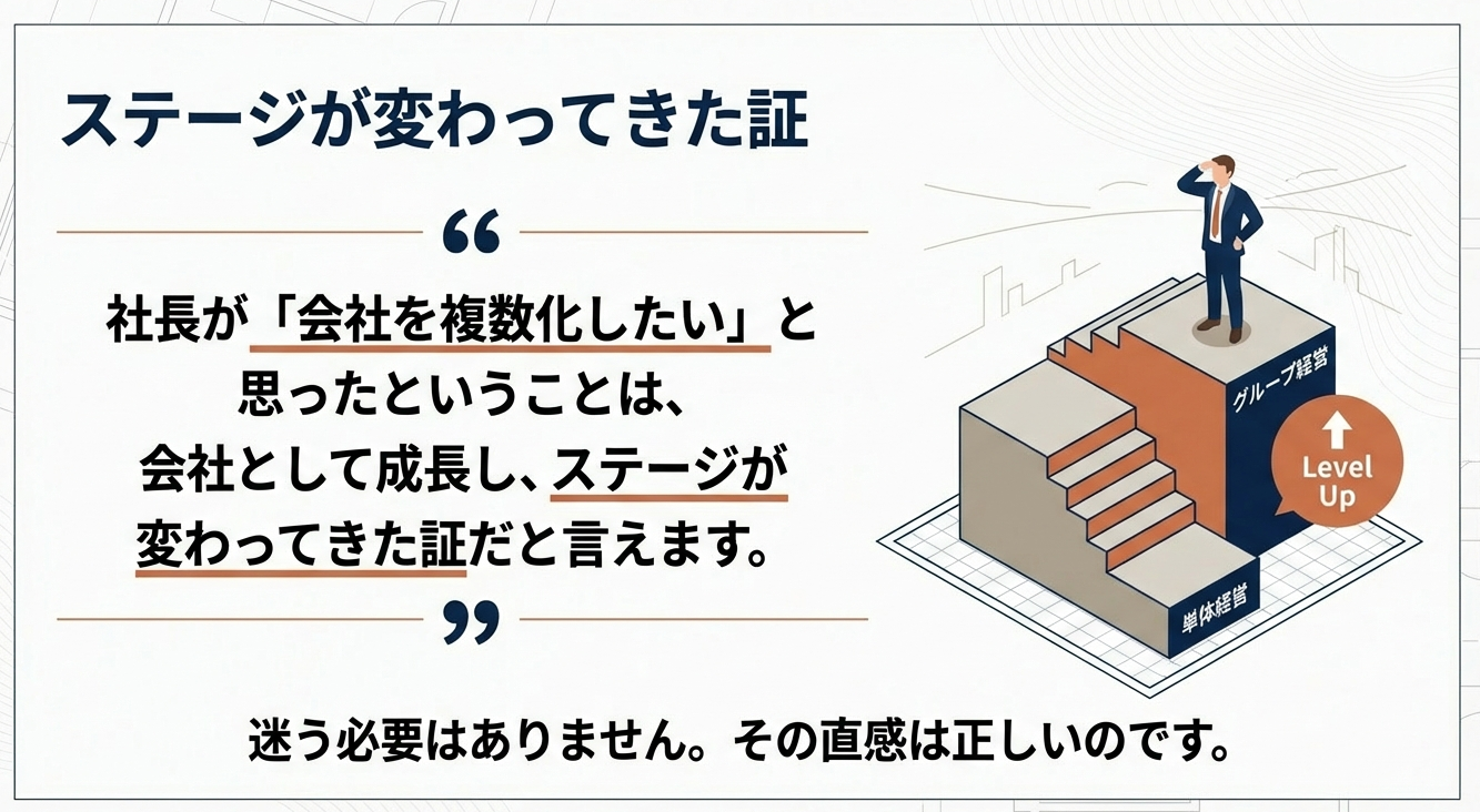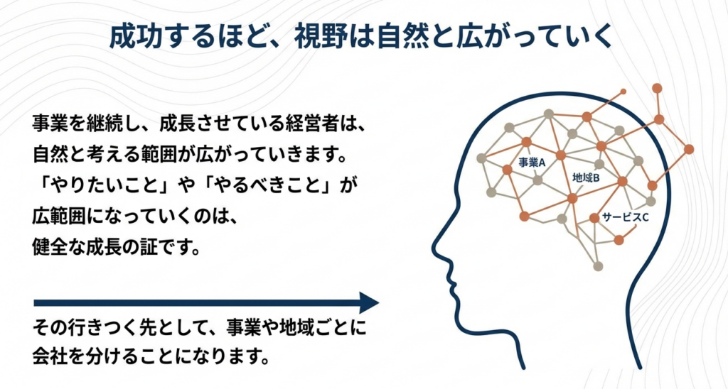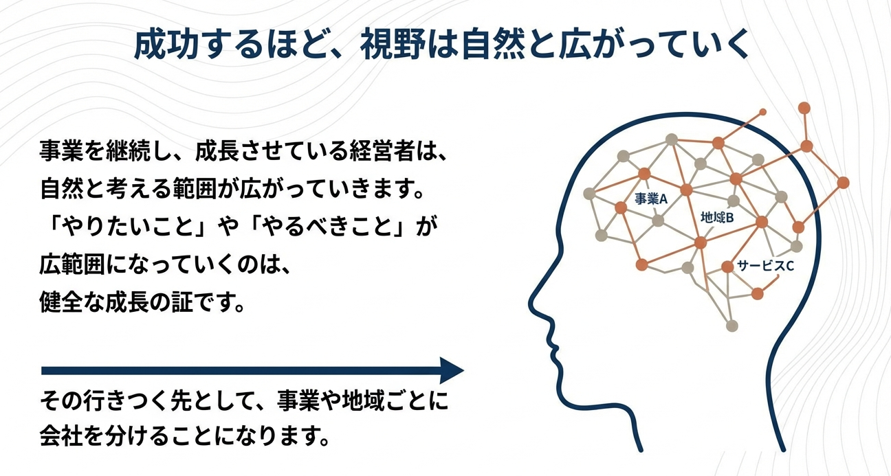 経営者の視界が広がり、別法人としての切り出しを望む心理は、次なる成長フェーズへの入り口に立っていることを意味します。